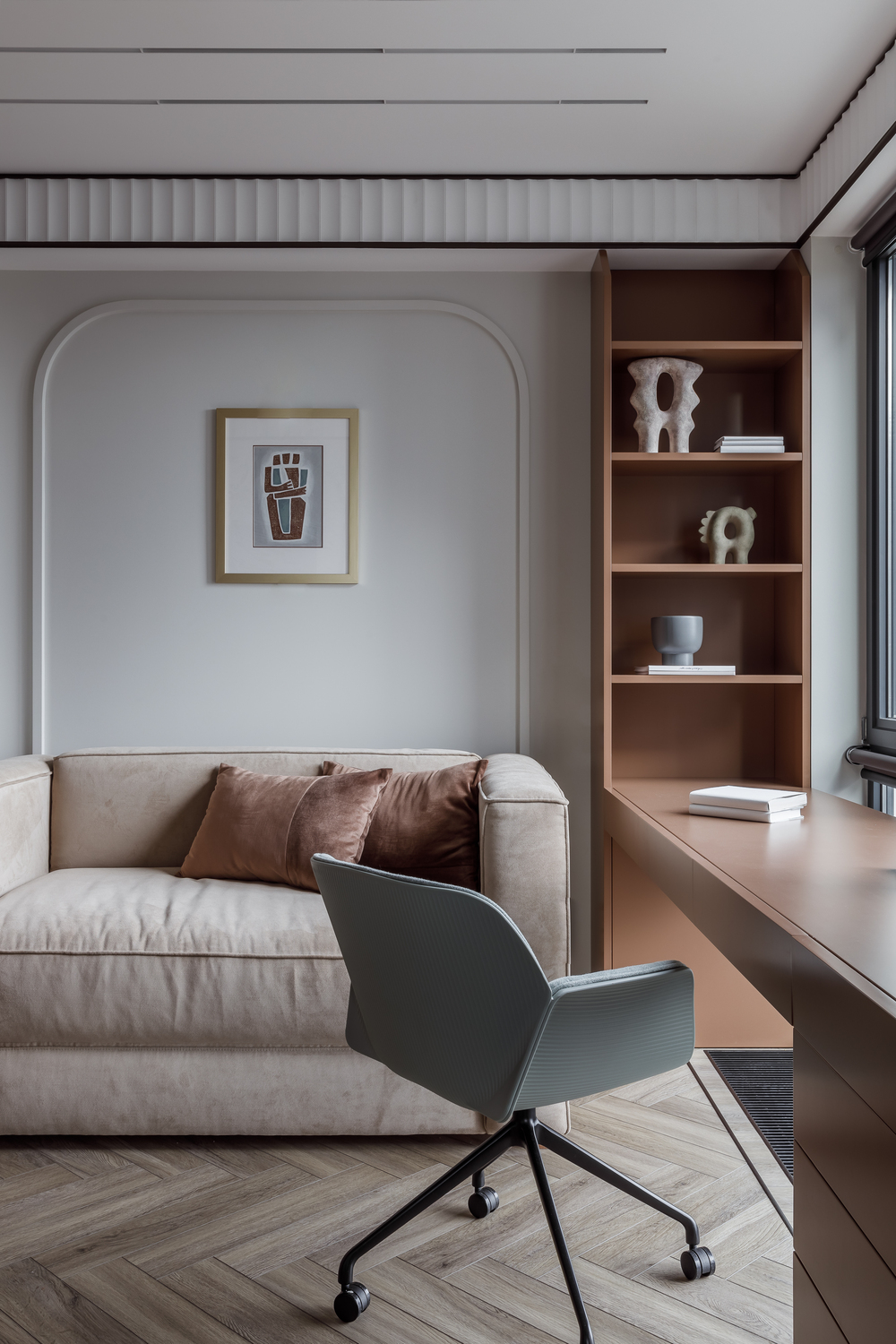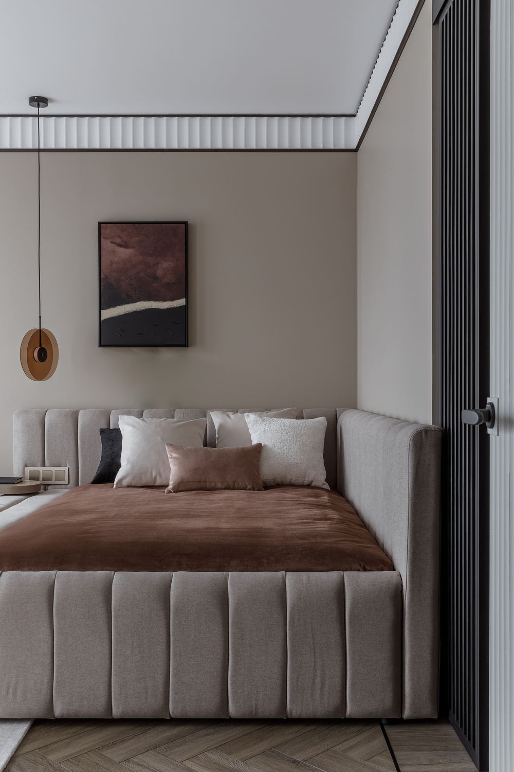 - 🛋️ индивидуальный диван в гостиной — спроектирован так, чтобы подушка поддерживала голову при любой посадке, при этом сохраняет минималистичный низкий профиль.